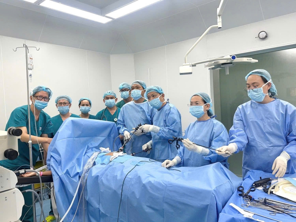 Các bác sĩ ngoại khoa của Bệnh viện Lê Văn Thịnh thực hiện ca mổ nội soi viêm ruột thừa tại Bệnh viện Từ Dũ cơ sở 2 - Cần Giờ (Ảnh: BV cung cấp)