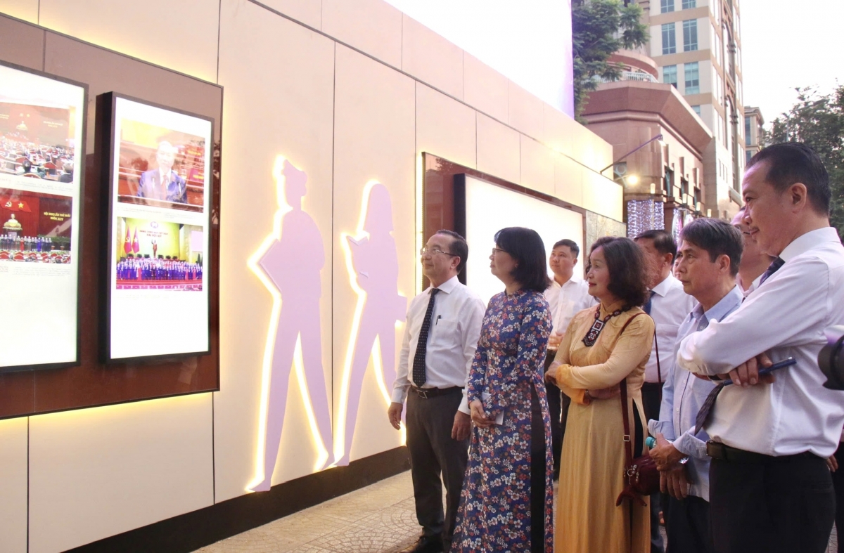 Tại khu vực đường Đồng Khởi - Lý Tự Trọng, Ban Tổ chức trưng bày 40 ảnh với nội dung “Xây dựng Thành phố Hồ Chí Minh văn minh, hiện đại, đổi mới, sáng tạo, năng động, hội nhập”.