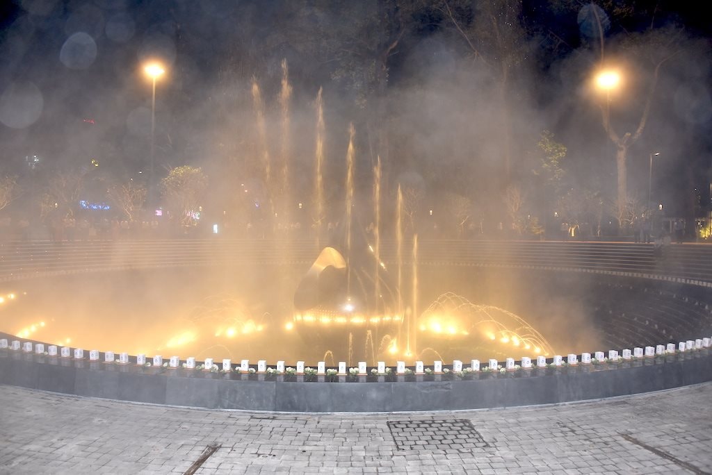 Tại trung tâm là tượng đài giọt nước cao 6m, làm từ inox gương, bên trong là hình ảnh trái tim, biểu tượng của sự tri ân và yêu thương.