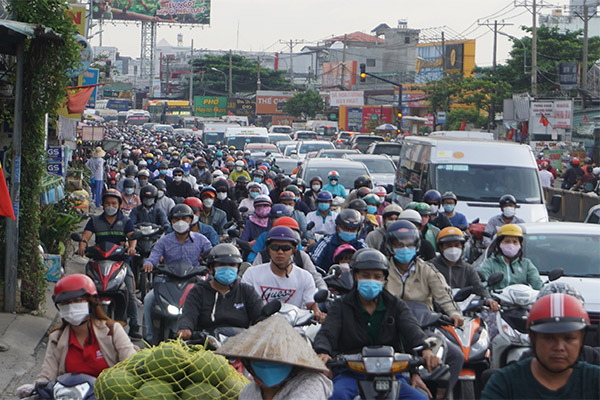 Quốc lộ 13 thường xuyên xảy ra kẹt xe do đường chưa được mở rộng - Ảnh: Lê Quân