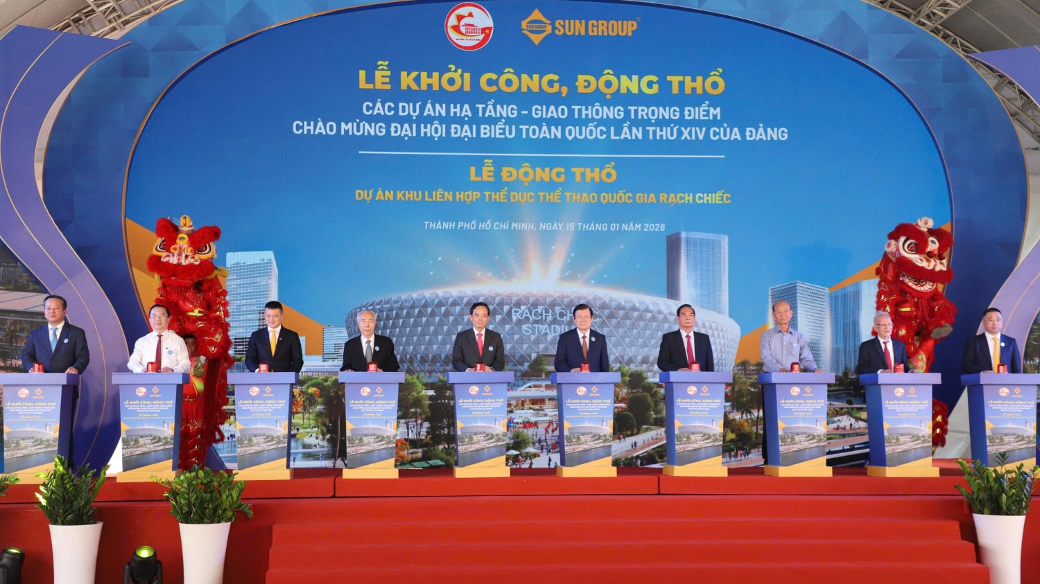 Trong số 4 dự án được khởi công - động thổ, Khu Liên hợp TDTT Quốc gia Rạch Chiếc có tổng mức đầu tư lớn nhất, hơn 145.600 tỷ đồng, được giao cho Công ty TNHH Mặt trời Vũng Tàu thuộc Tập đoàn Sun Group làm nhà đầu tư thực hiện, theo phương thức đối tác công tư (PPP).