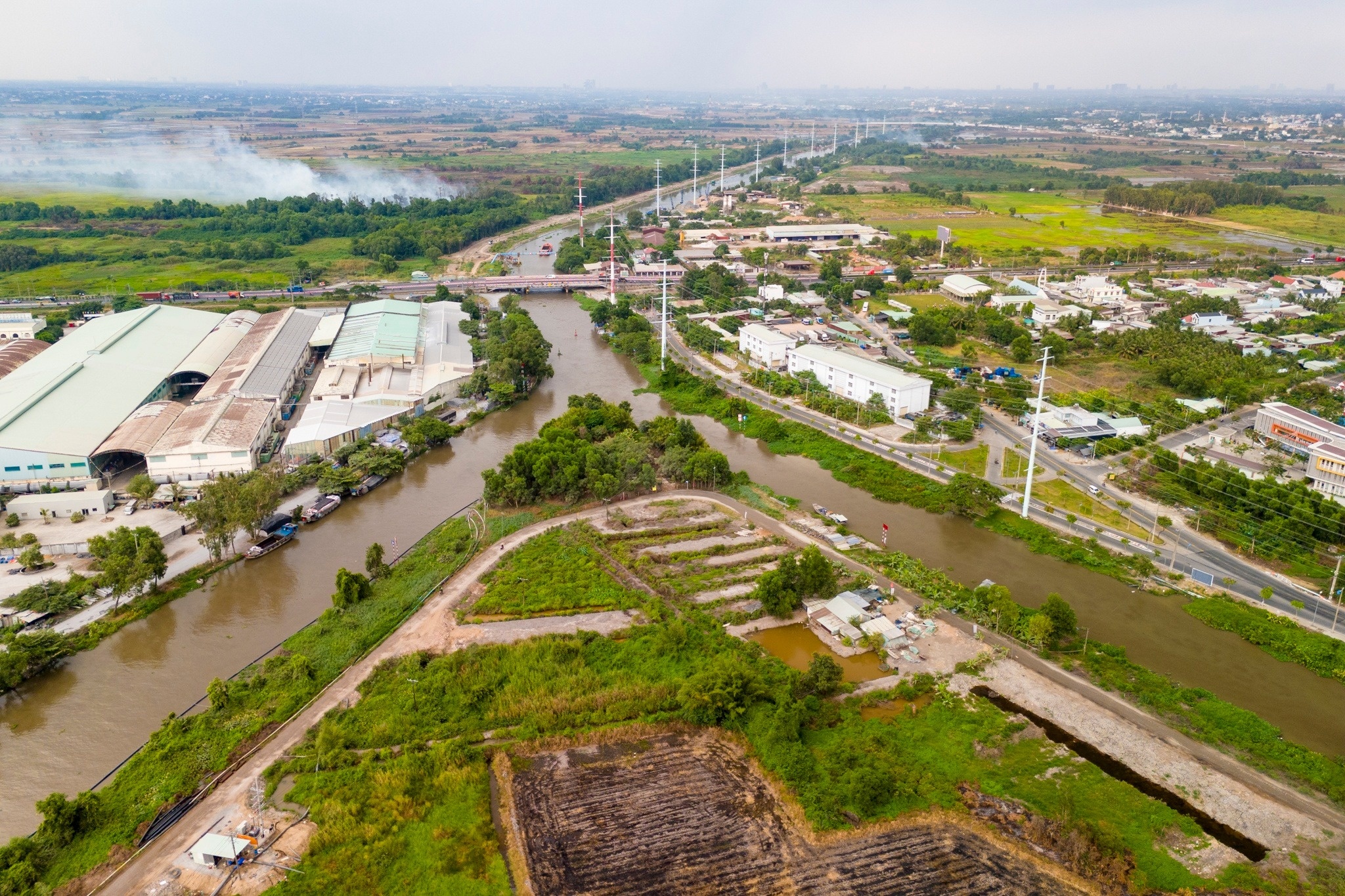 Khu đô thị Đại học Quốc tế có quy mô gần 880 ha, thuộc một phần địa giới hành chính xã Xuân Thới Sơn, với ranh giới tự nhiên tiếp giáp kênh An Hạ, kênh ranh Tây Ninh, kênh 8 và kênh Thầy Cai. Dự án này sẽ hưởng lợi trực tiếp khi hàng loạt công trình hạ tầng chiến lược như Vành đai 3 TP.HCM sắp khai thác toàn tuyến cuối năm 2026, cao tốc TP.HCM - Mộc Bài và Quốc lộ 22 mở rộng được triển khai trong thời gian tới. Ảnh: Quỳnh Danh.