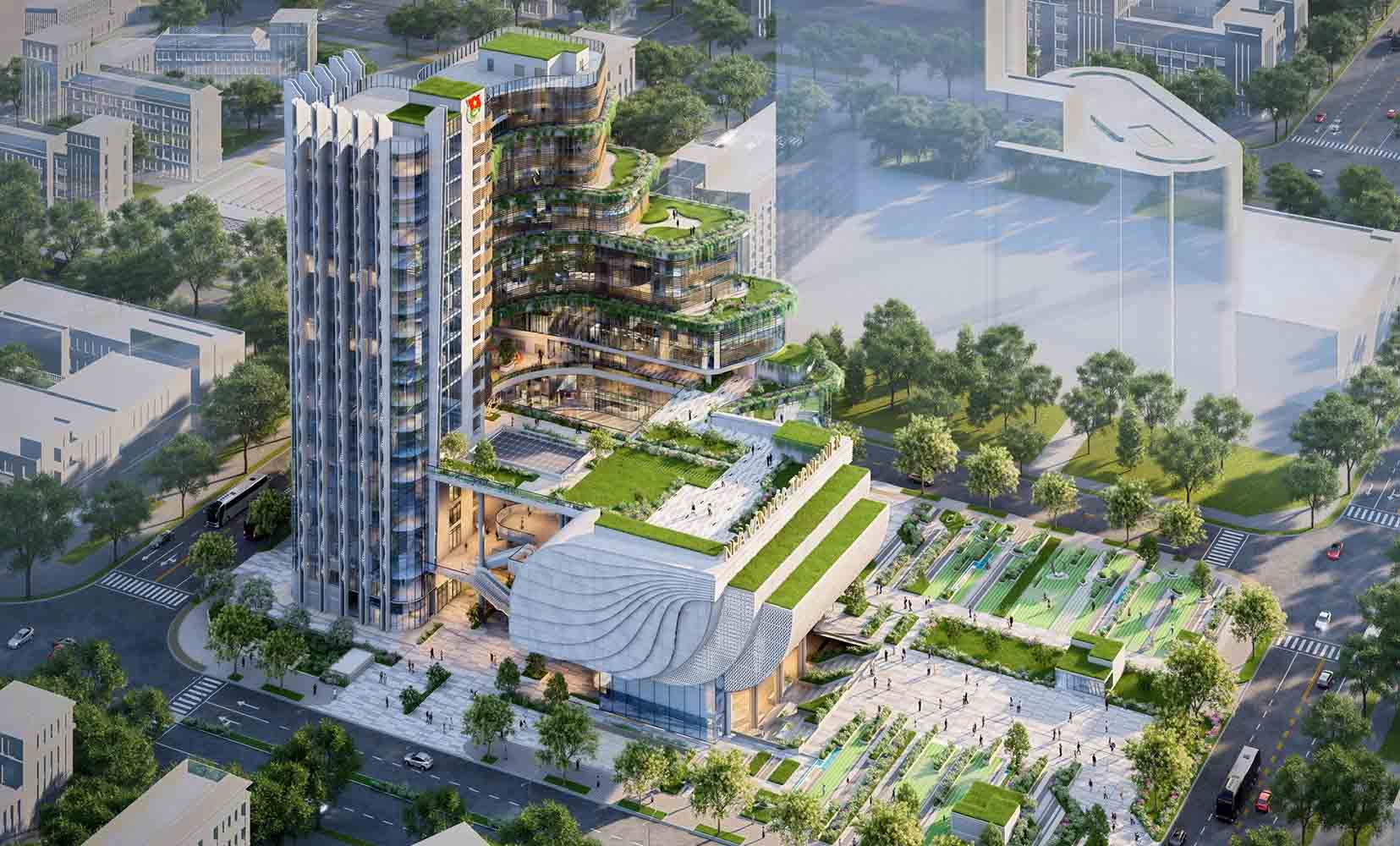 Tổ hợp không gian ngoài trời và trong nhà sẽ giúp thuận tiện cho công tác khai thác hoạt động, tích hợp công năng linh hoạt trong cùng một tổ hợp từ quảng trường sự kiện (tầng 1), hội trường 500 - 700 chỗ (tầng 3), đến các khu Trung tâm khoa học công nghệ trẻ, Trung tâm khởi nghiệp (tầng 12, 13) và các Lớp học kỹ năng (tầng 18 - 20) và khu vực ngoài trời.