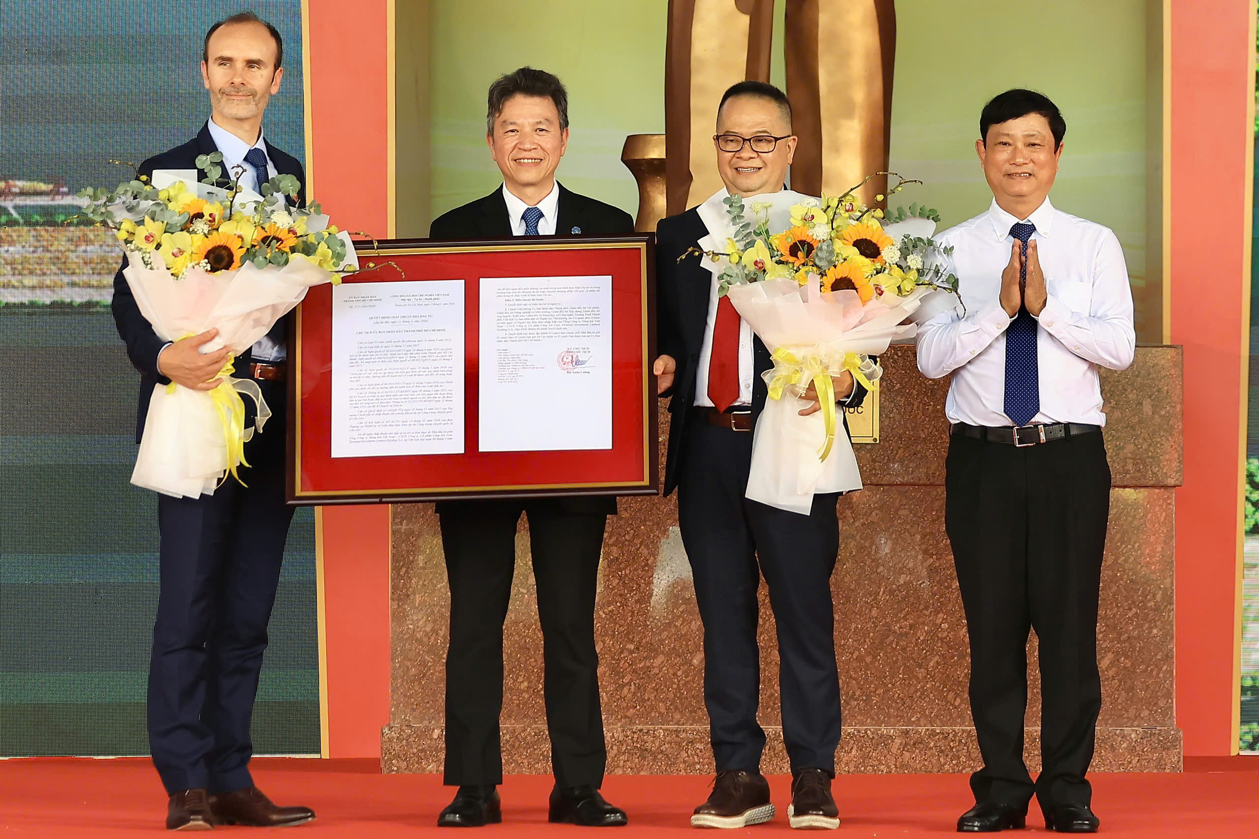 Cũng buổi lễ, lãnh đạo TP.HCM đã trao Quyết định chấp thuận Nhà đầu tư dự án Cảng trung chuyển quốc tế Cần Giờ cho liên danh Tổng công ty Hàng hải Việt Nam – CTCP, Công ty cổ phần Cảng Sài Gòn, Terminal Investment Limited Holding S.A.