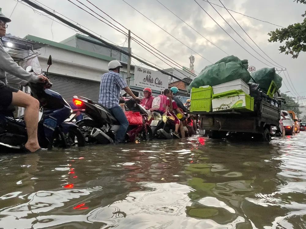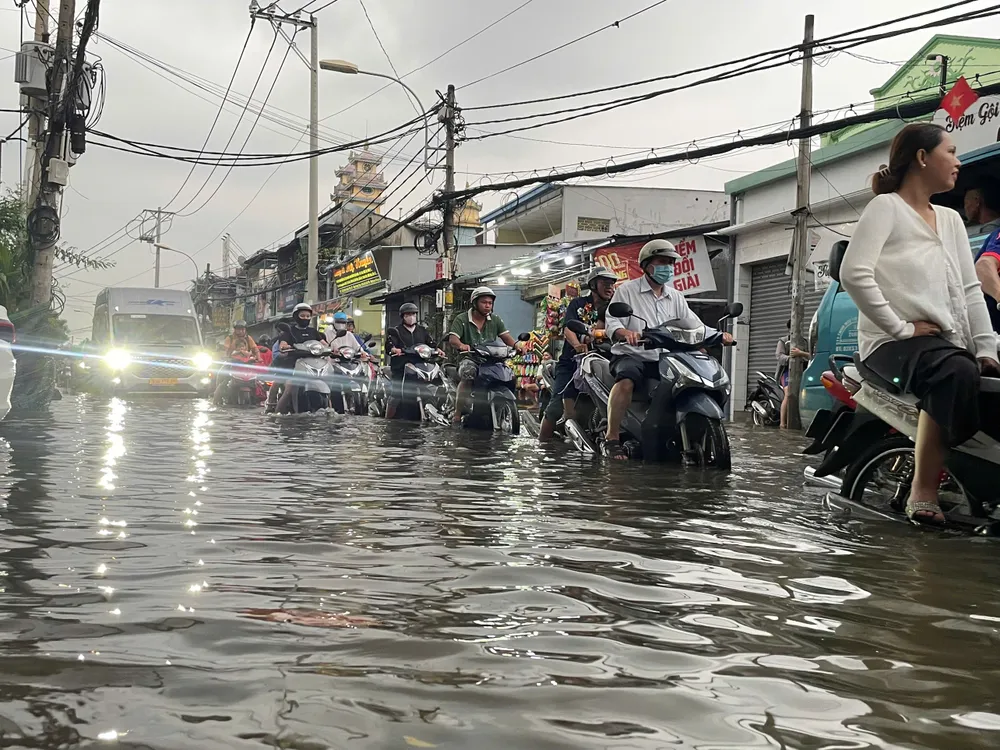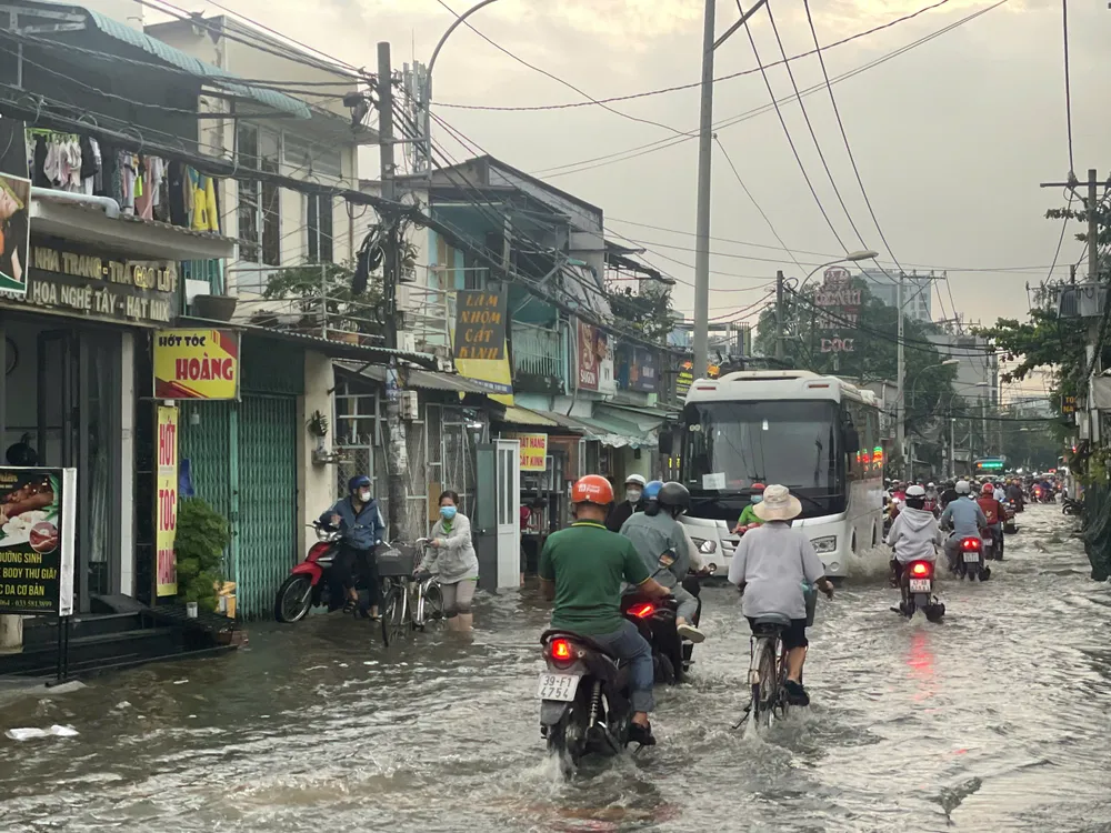 Chiều 5-11, TP.HCM lại tiếp tục đón một đợt triều cường mới, khi những con nước từ sông Sài Gòn bắt đầu dâng cao, nước tràn vào nhiều tuyến đường nội đô.