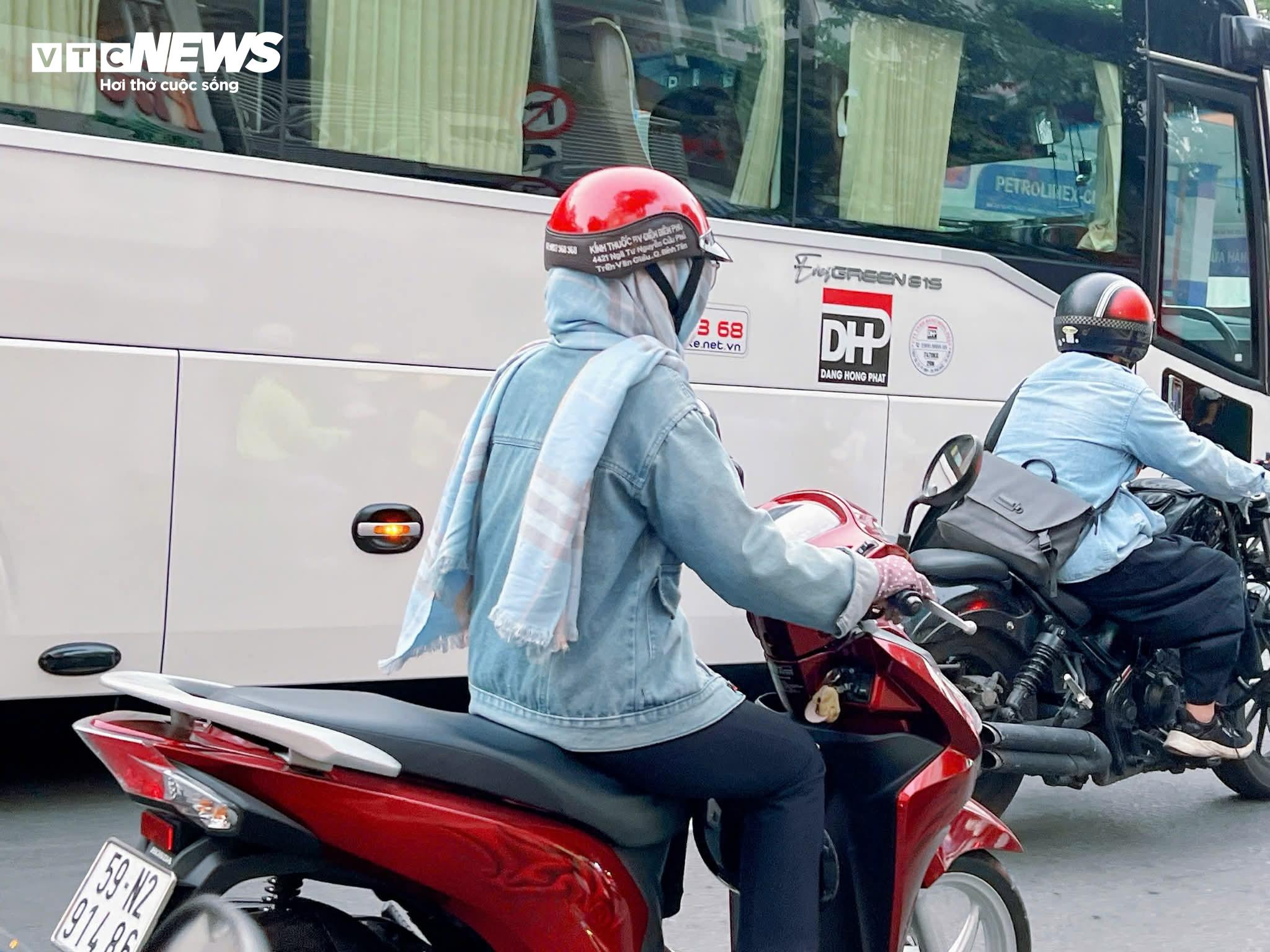 Người dân TP.HCM mặc áo ấm vào sáng nay do thời tiết se lạnh. (Ảnh: Phan Nga)