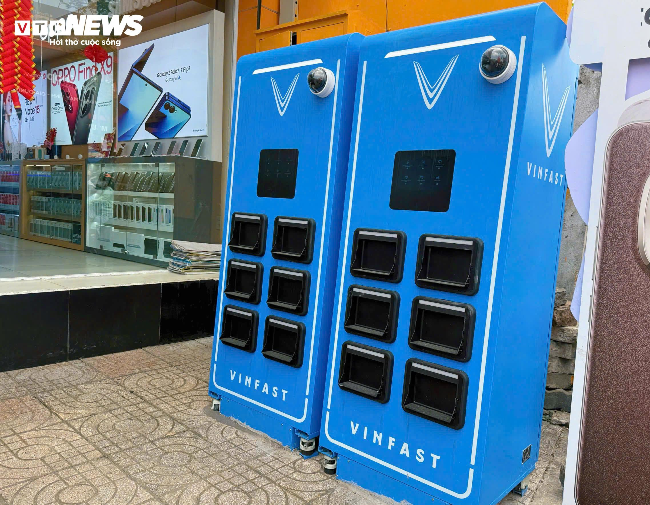 Tủ đổi pin xe máy điện đang được lắp đặt tại các cửa hàng Điện Máy Xanh, Thế giới Di động, FPT Shop... trên địa bàn TP.HCM.