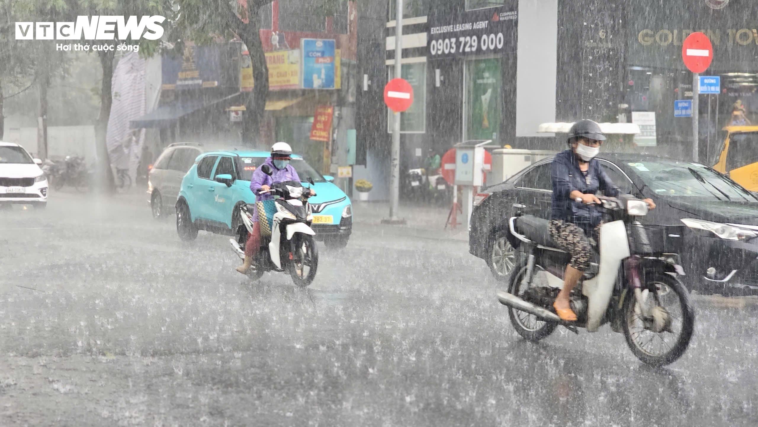 Nhiều người đi đường bị ướt vì chưa kịp mặc áo mưa.