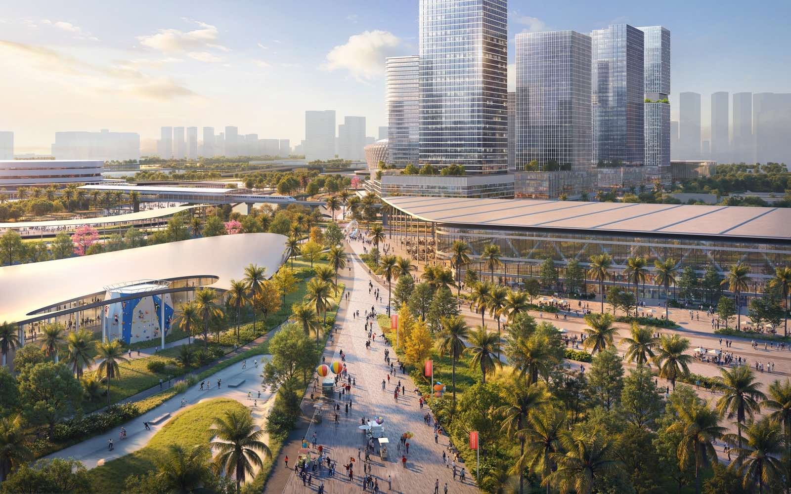Điểm nhấn của dự án là sân vận động trung tâm xây dựng trên 24ha, quy mô lên tới 70.000 chỗ ngồi, có mái che đóng mở tự động và hệ thống điều hòa nhiệt độ hiện đại bậc nhất hiện nay, với tổng mức đầu tư 35.000 tỷ đồng. Đây cũng là hạng mục then chốt của dự án.