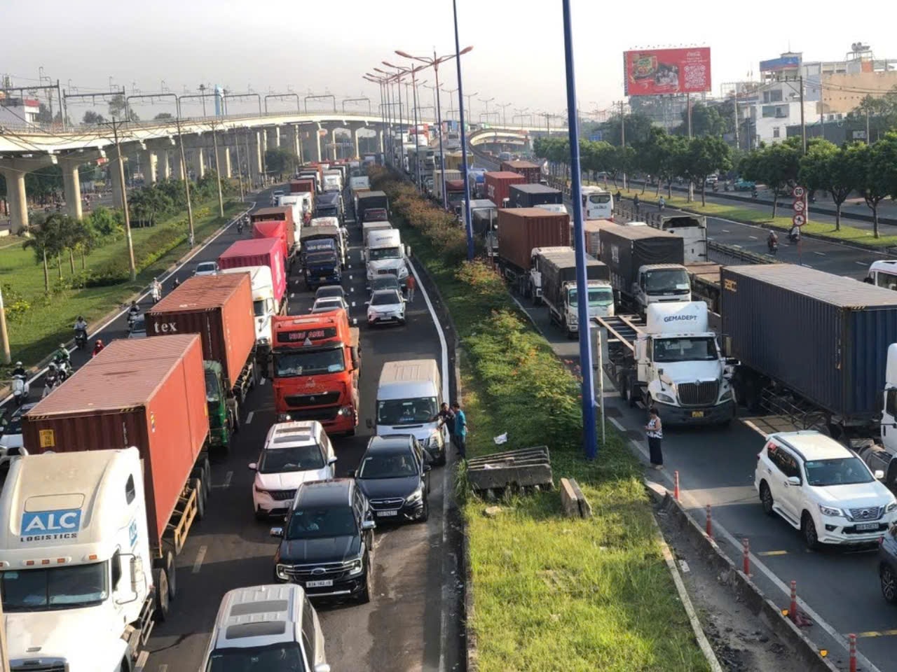Đường hướng về cảng Cát Lái thường xuyên ùn tắc