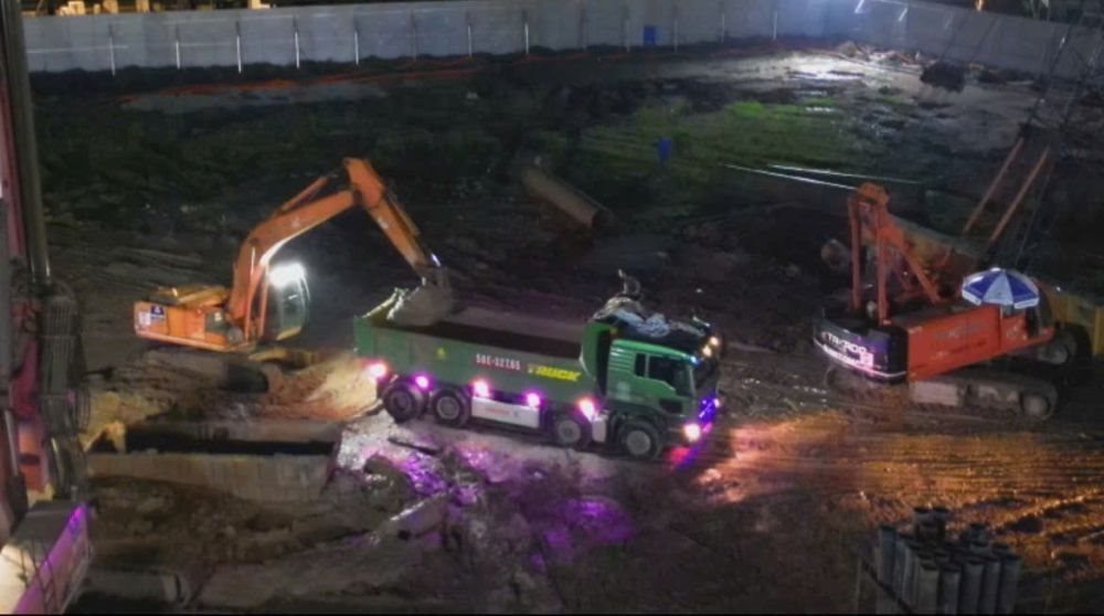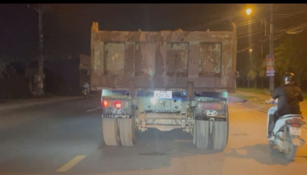Xe tải lấy đất, bùn từ công trình ra trong đêm.