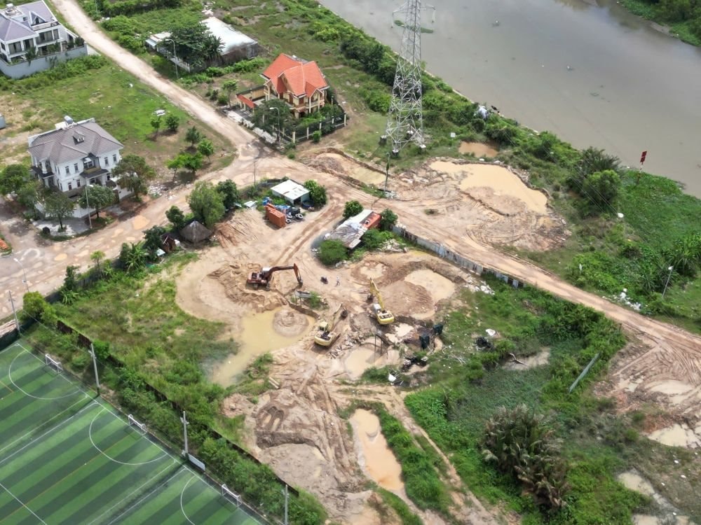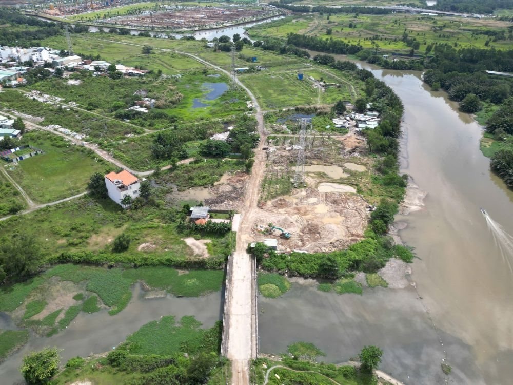 Bãi đất tại phường Bình Trưng bao quanh là sông, rạch có ghi nhận bùn, đất thải nghi từ công trình xây dựng vận chuyển tới.