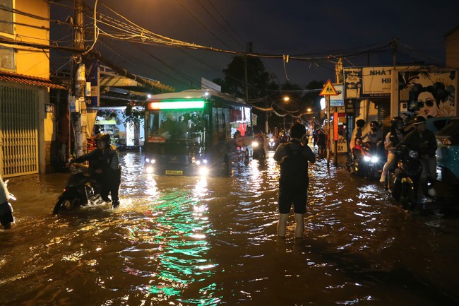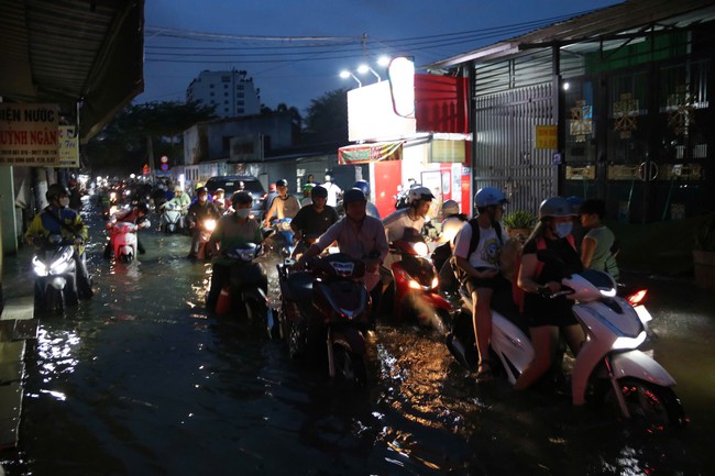 Chiều qua, dù triều cường chưa đạt đỉnh, song loạt tuyến đường như: Huỳnh Tấn Phát, Trần Xuân Soạn, Bình Quới cũng đã ngập sâu, kéo dài.