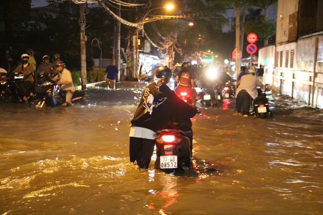 Chiều tối 6-11, triều cường ở TP HCM vượt mức triều lịch sử, đỉnh triều cao nhất gây ngập nhiều tuyến đường.