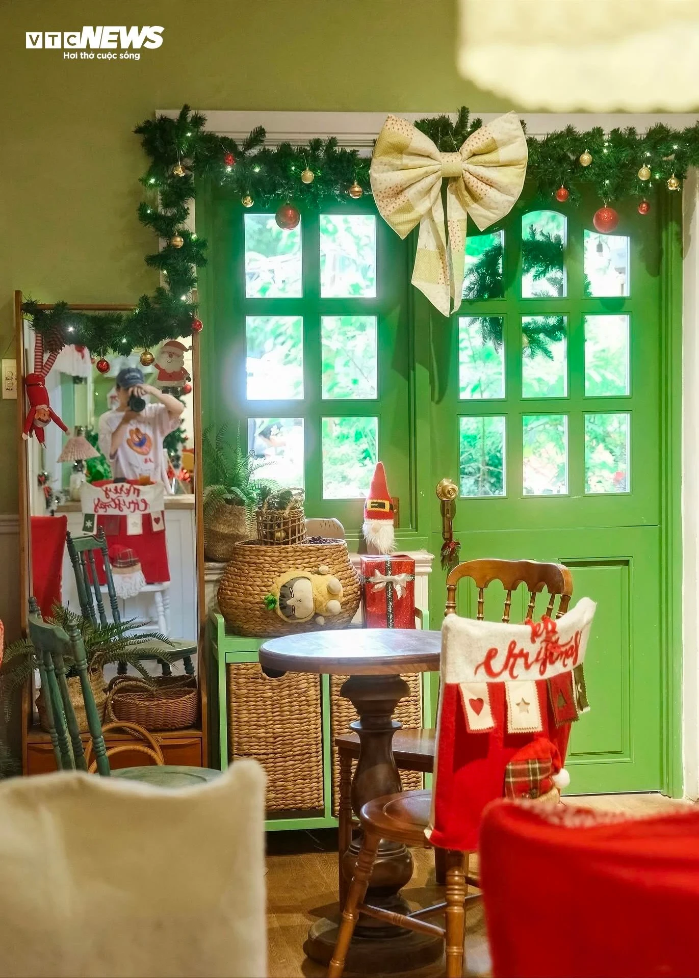 Trong khi đó, Maison de Boony trên đường Tú Xương (phường Võ Thị Sáu) lại mang đến một cảm giác khác biệt. Với tông màu xanh lá chủ đạo sẵn có, quán khéo léo pha thêm sắc đỏ rực rỡ của Noel, tạo nên một không gian vừa tươi mới vừa ấm cúng cho thực khách.