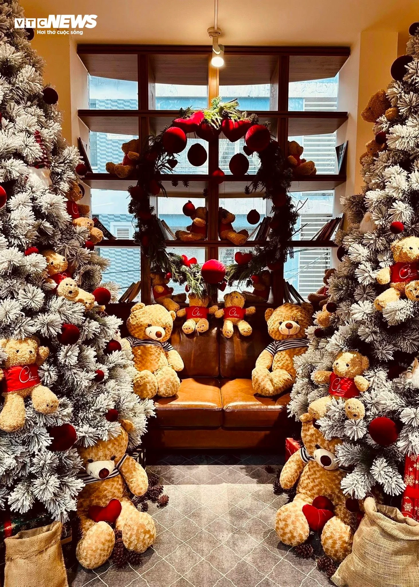 Tại quán cà phê Clem nằm trên đường Nguyễn Gia Trí (phường Thạnh Mỹ Tây), không gian được phủ kín bởi những cây thông tuyết trắng và gấu bông, tạo nên những góc hình lung linh. Đây là điểm đến yêu thích của những ai tìm kiếm sự ngọt ngào và lãng mạn trong mùa lễ hội.