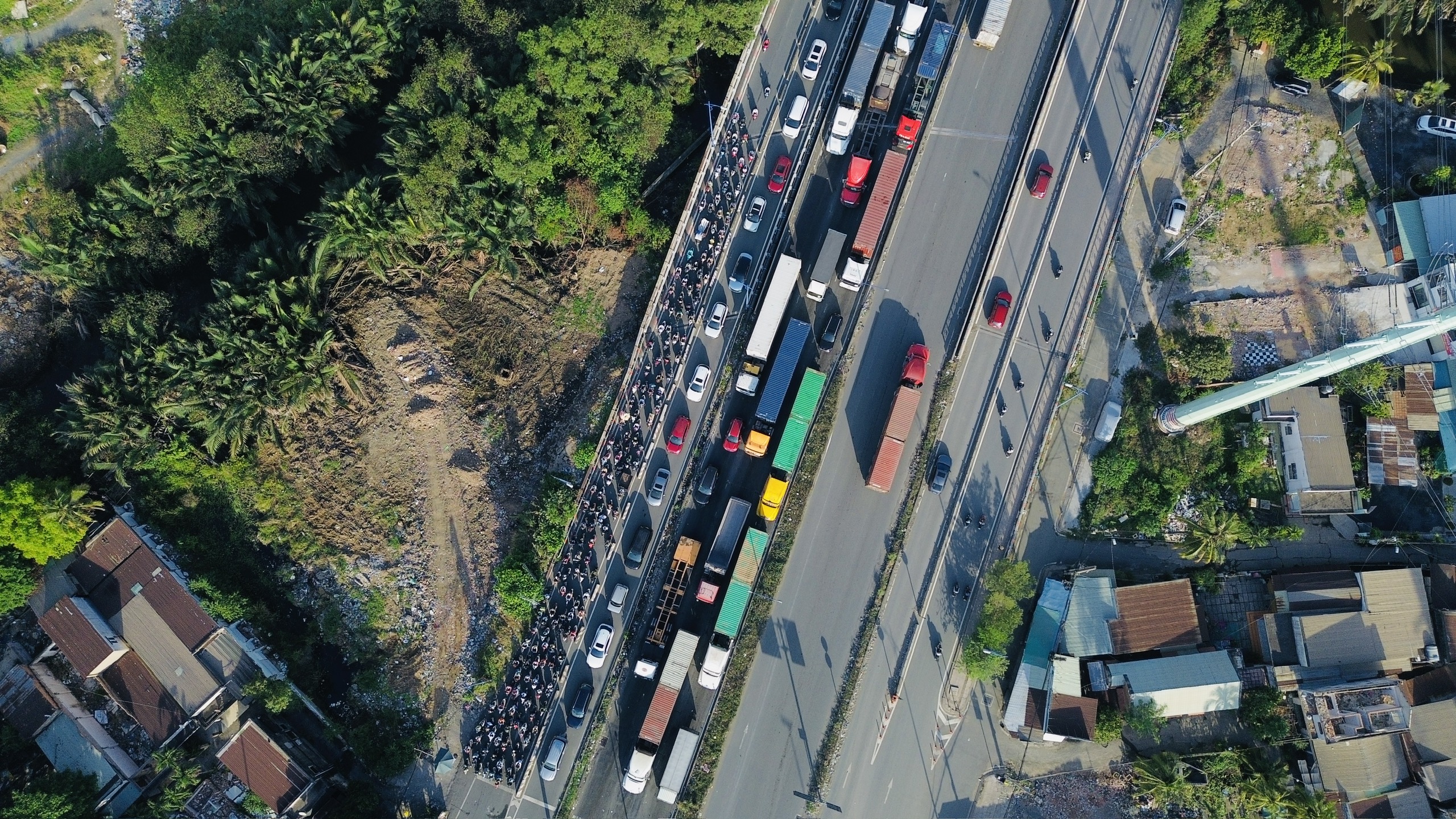 Dòng xe nối đuôi ken đặc trên đường vào cảng Cát Lái.