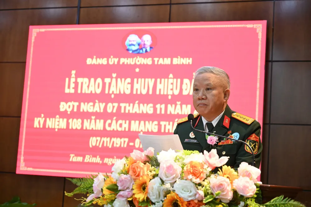Ngày 4-11, Đảng ủy phường Tam Bình, TP.HCM, tổ chức lễ kỷ niệm 108 năm Cách mạng Tháng Mười Nga (7-11-1917 – 7-11-2025) và trao Huy hiệu Đảng đợt 7-11 cho 23 đảng viên trực thuộc Đảng bộ phường.