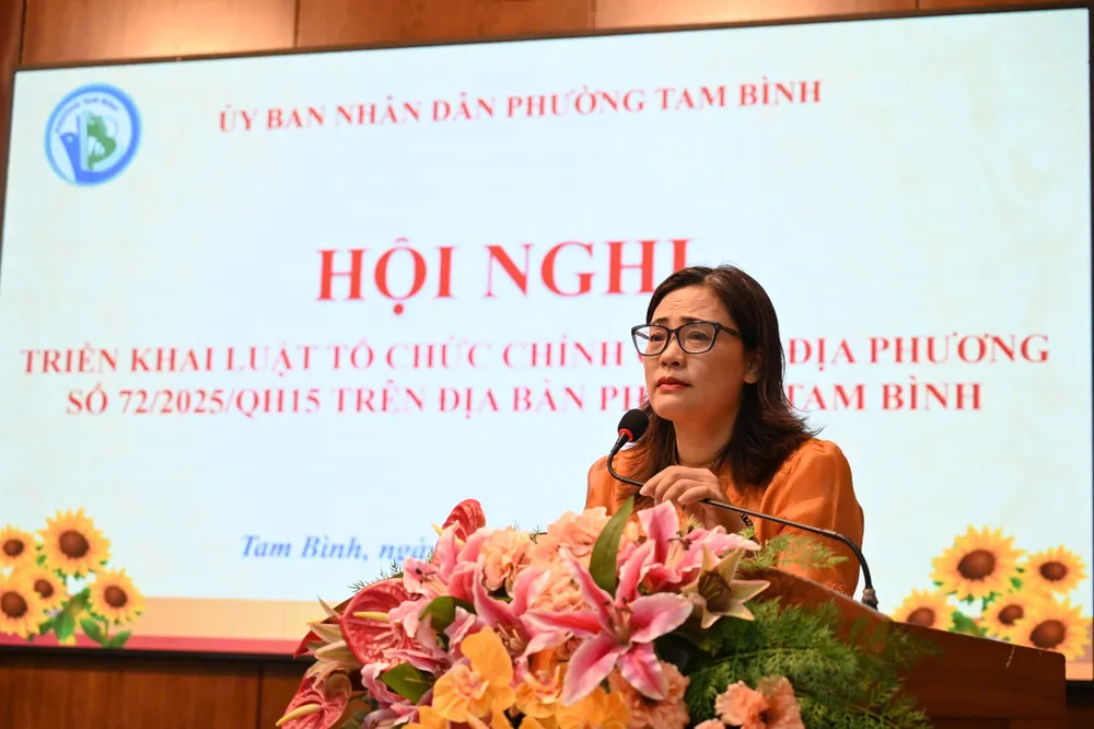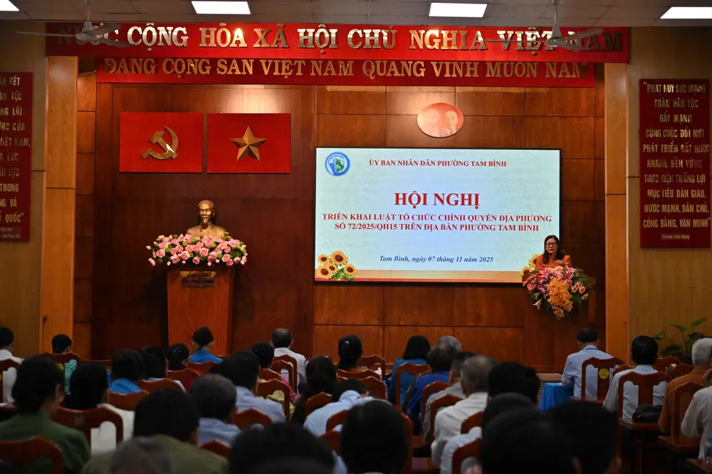 Ngày 7-11, UBND Phường Tam Bình, TP.HCM tổ chức hội nghị triển khai Luật Tổ chức chính quyền địa phương trên địa bàn. Qua hội nghị nhằm nâng cao nhận thức cho đội ngũ cán bộ, công chức, viên chức, chiến sĩ và nhân dân, tạo sự đồng thuận trong quá trình thực hiện mô hình chính quyền địa phương mới.