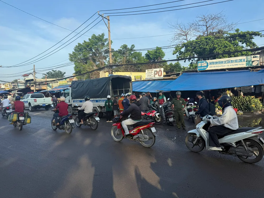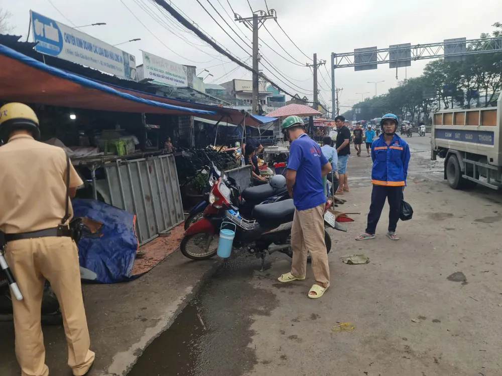 Đội CSGT Rạch Chiếc chấn chỉnh tình trạng "lộn xộn" trước chợ đầu mối nông sản Thủ Đức.