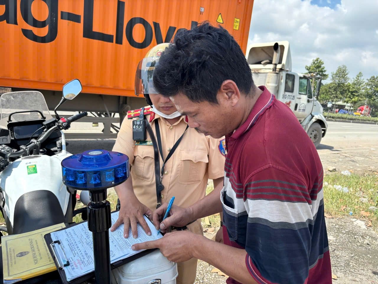 CSGT lập biên bản xử lý phương tiện vi phạm.