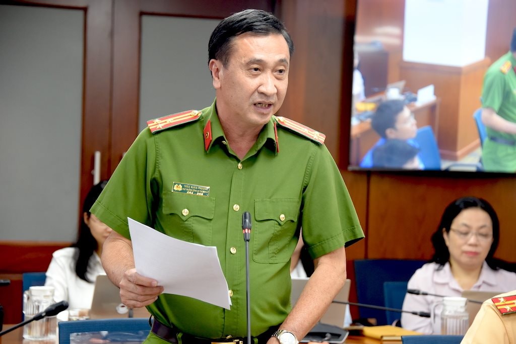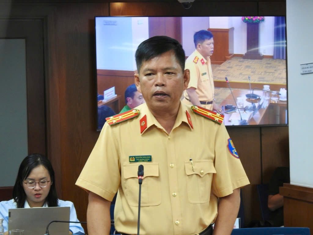 Thượng tá Nguyễn Văn Bình - Phó Trưởng phòng Cảnh sát giao thông Công an TPHCM thông tin tại họp báo.