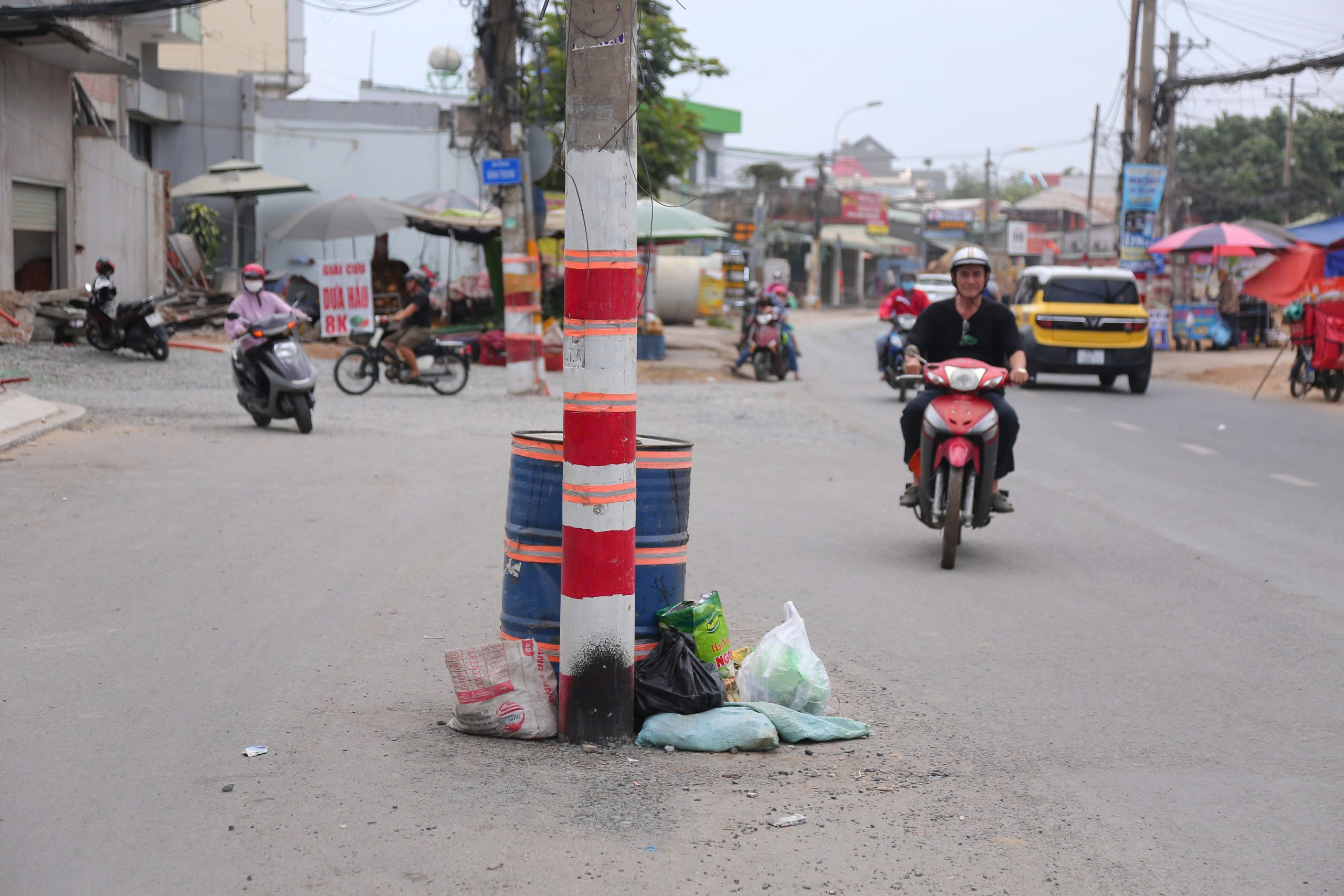 TP.HCM sẽ sơn phản quang trụ điện trên đường Nguyễn Thị Định để cảnh báo. Ảnh: ĐT