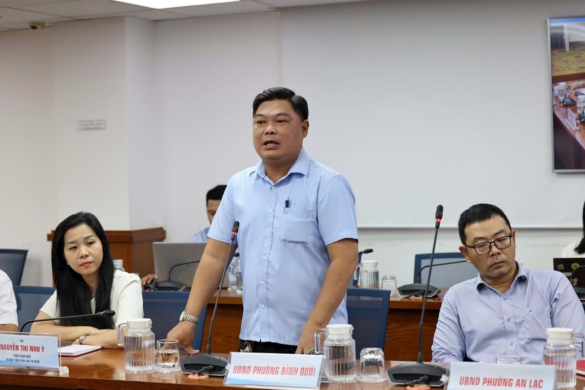 Phó Trưởng Phòng Phòng Kinh tế, Hạ tầng và Đô thị Phường Bình Quới Nguyễn Hoài Anh, chia sẻ tại cuộc họp báo. Ảnh: Trung tâm Báo chí Thành phố