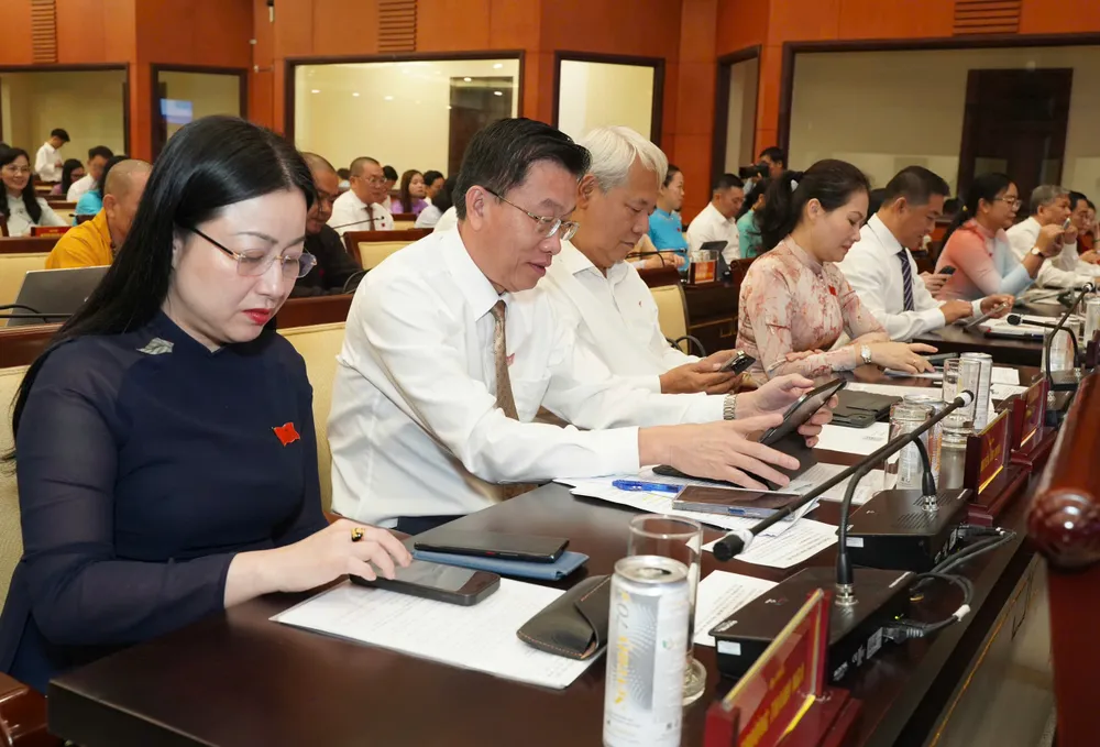 Đại biểu biểu quyết thông qua nghị quyết. Ảnh: THUẬN VĂN
