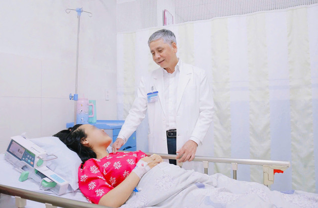 BS. CKII. Trần Ngọc Hải - Giám đốc bệnh viện - thăm và động viên thai phụ. Ảnh: BV Từ Dũ