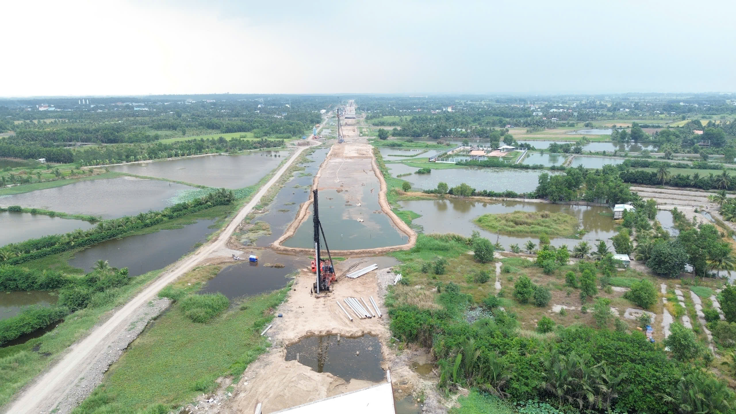 Một số đoạn tuyến Vành đai 3 phía Tây TP.HCM còn dang dở, các nhà thầu đang tập trung xử lý nền đất yếu để kịp tiến độ.