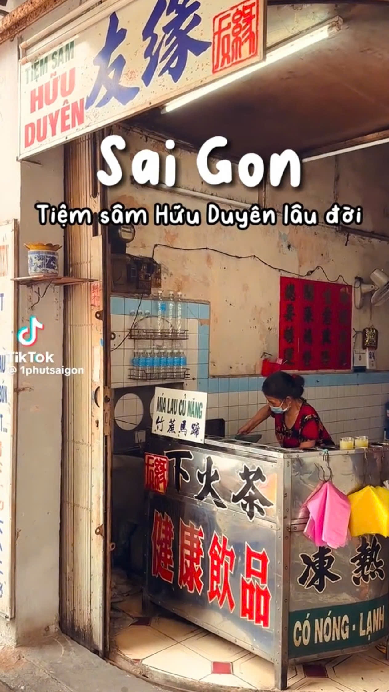 Tiệm nước sâm này gây ấn tượng mạnh mẽ nhờ giữ được nguyên vẹn kiến trúc và hơi thở của những năm 1990. Những chi tiết cổ điển như nền gạch bông đặc trưng, bảng hiệu vẽ tay kiểu cũ và những chiếc ly thủy tinh giản dị đã tạo nên một bối cảnh đậm chất điện ảnh, thu hút hàng triệu lượt quan tâm trên các nền tảng mạng xã hội.