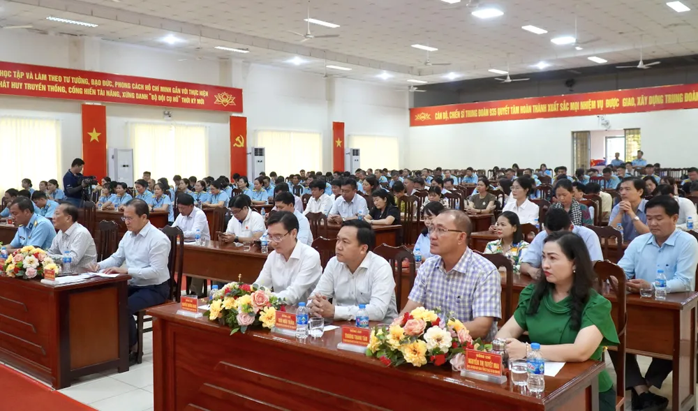 Đoàn công tác Đảng ủy UBND TPHCM đến giao lưu chương trình “Dân vận khéo - Kết nối biên cương” với Trung đoàn 935. Ảnh: VŨ HỘI