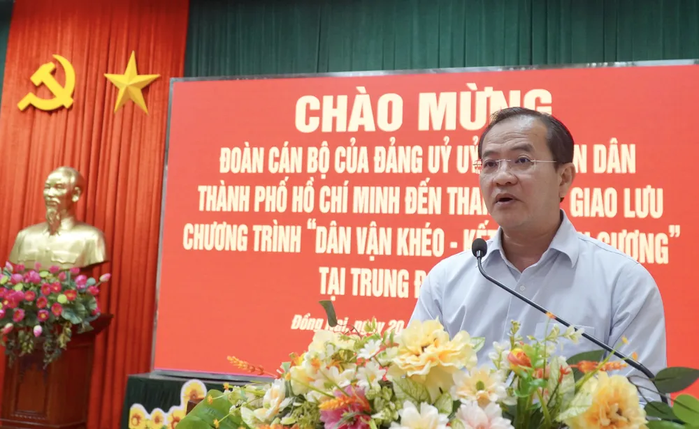 Phó Bí thư Đảng ủy UBND TP.HCM Huỳnh Tân Định phát biểu tại buổi giao lưu. Ảnh: VŨ HỘI