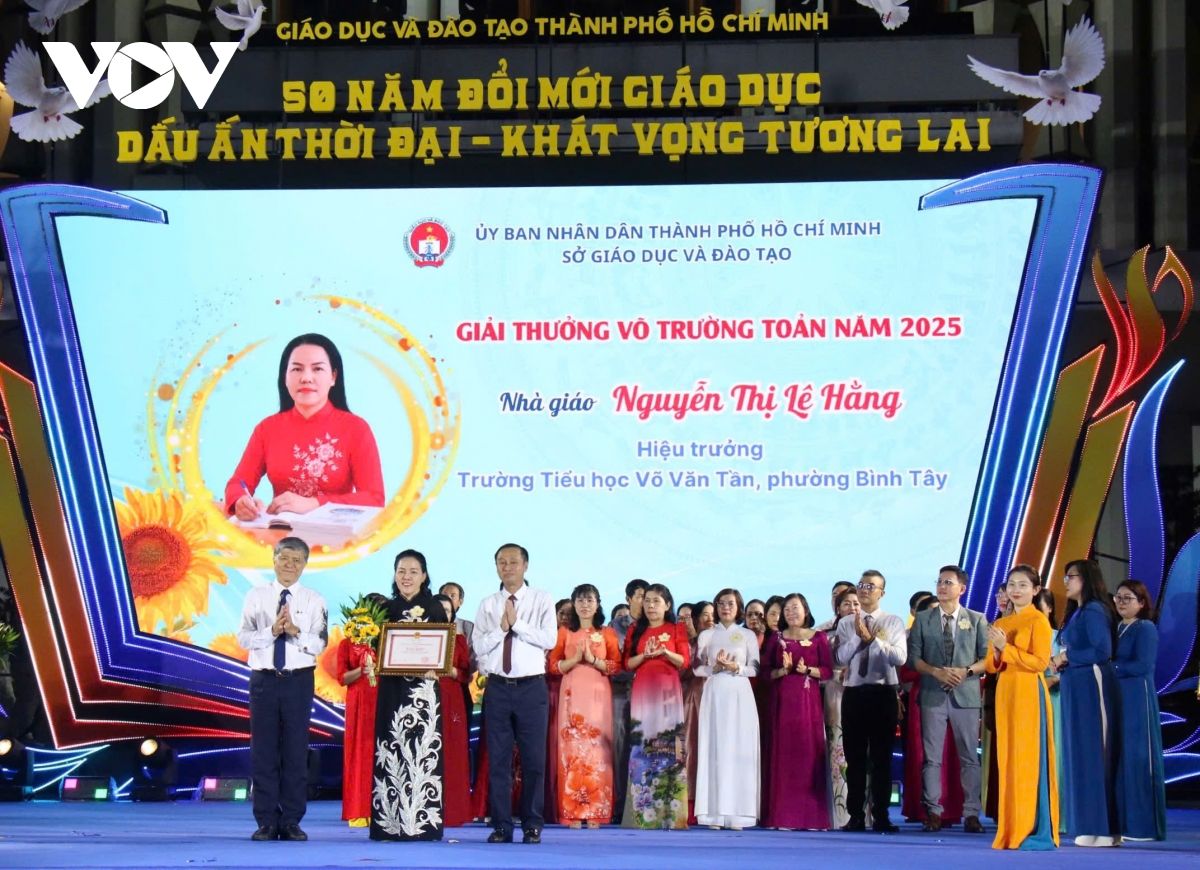 Dịp này, 50 cán bộ quản lý, giáo viên có thành tích xuất sắc trong ngành giáo dục của thành phố được trao tặng Giải thưởng Võ Trường Toản lần thứ 28 năm 2025, nhân dịp kỷ niệm Ngày Nhà giáo Việt Nam 20/11