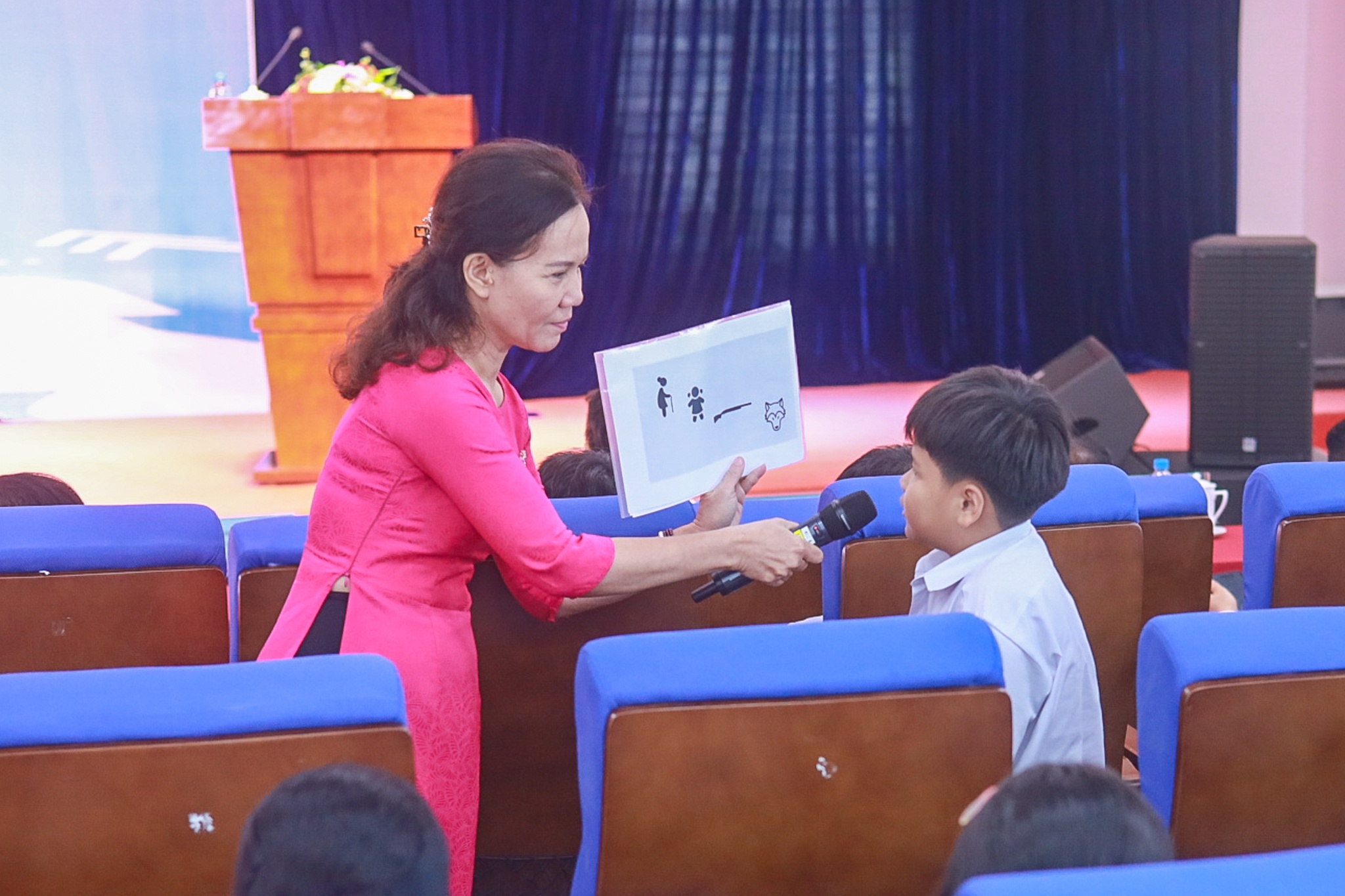 Thông qua các trò chơi tương tác và tình huống giả lập, bà hướng dẫn những kỹ năng thiết yếu giúp học sinh nhận diện nguy hiểm, hiểu rõ bản chất của các rủi ro trong đời sống thường ngày và biết cách xử lý khi đối diện.