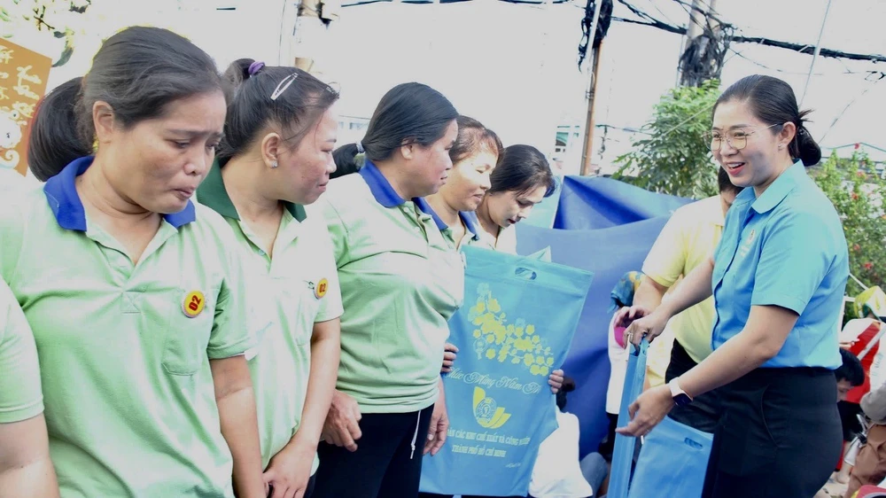 Nhiều hoạt động chăm lo Tết được các cơ quan ban ngành tổ chức cho công nhân, người lao động. Ảnh: HẢI NHI