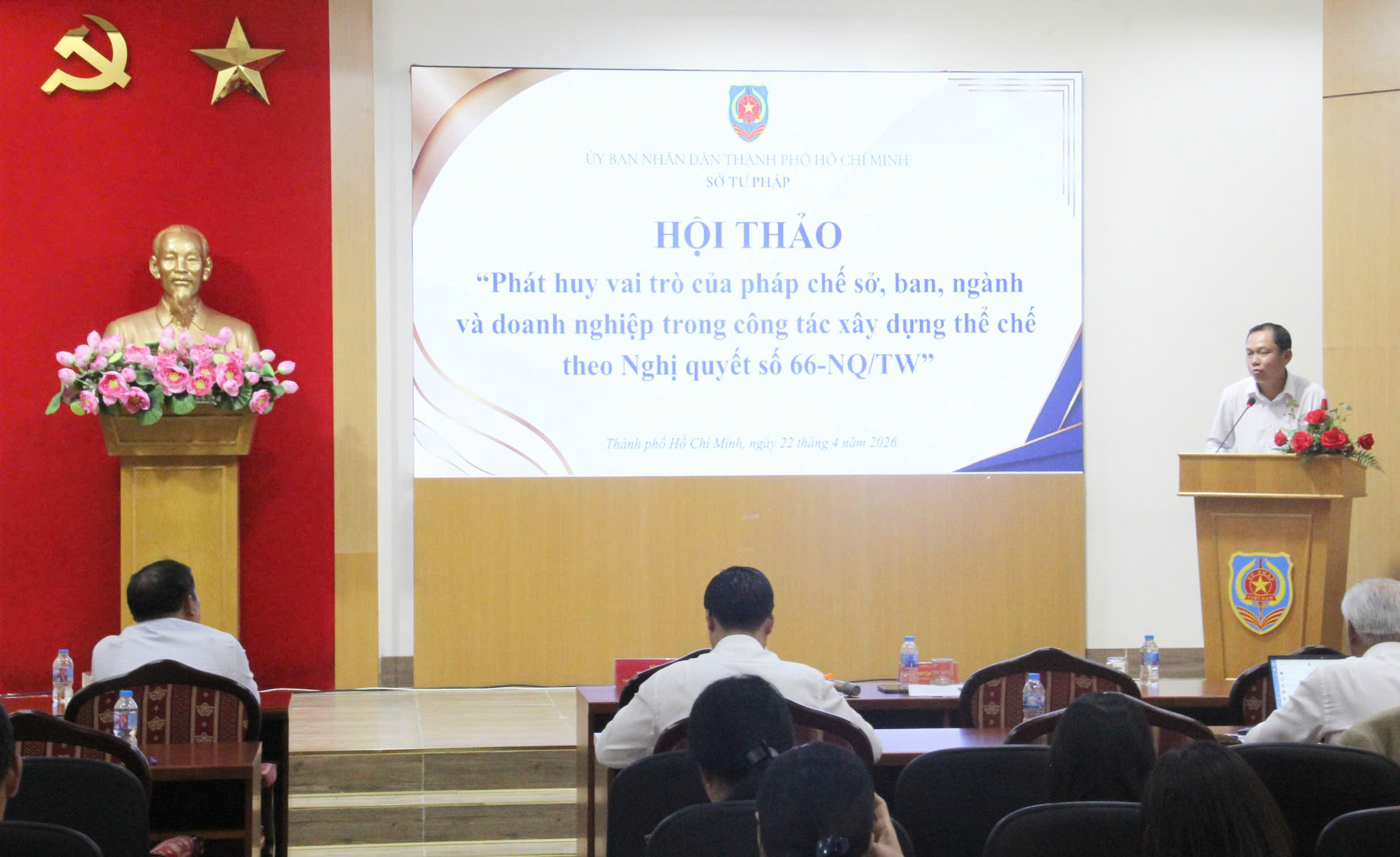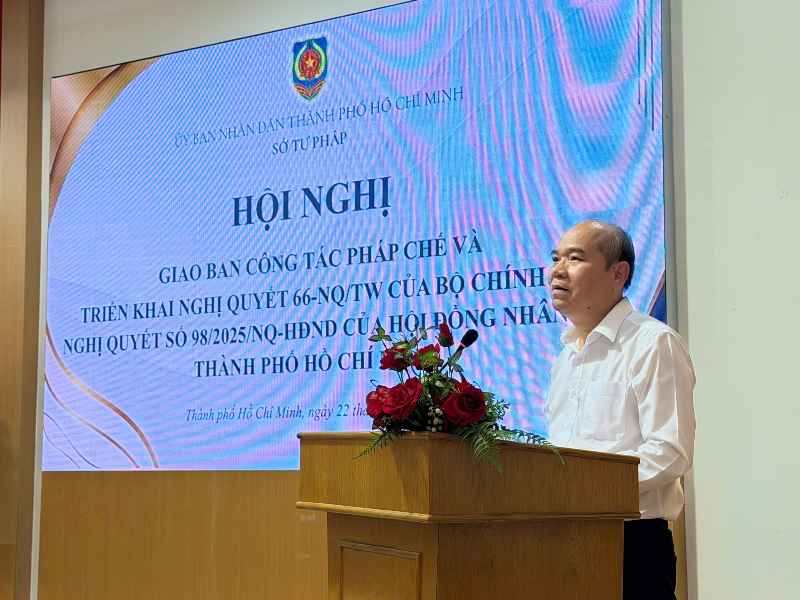 Ngày 22-4, Sở Tư pháp TP.HCM tổ chức hội nghị giao ban công tác pháp chế và triển khai Nghị quyết 66-NQ/TW năm 2025 của Bộ Chính trị, Nghị quyết 98/2025 của HĐND TP.HCM.