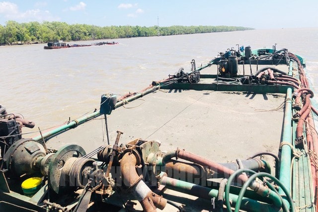 Một phương tiện khai thác cát trái phép bị phát hiện tại vùng biển Cần Giờ