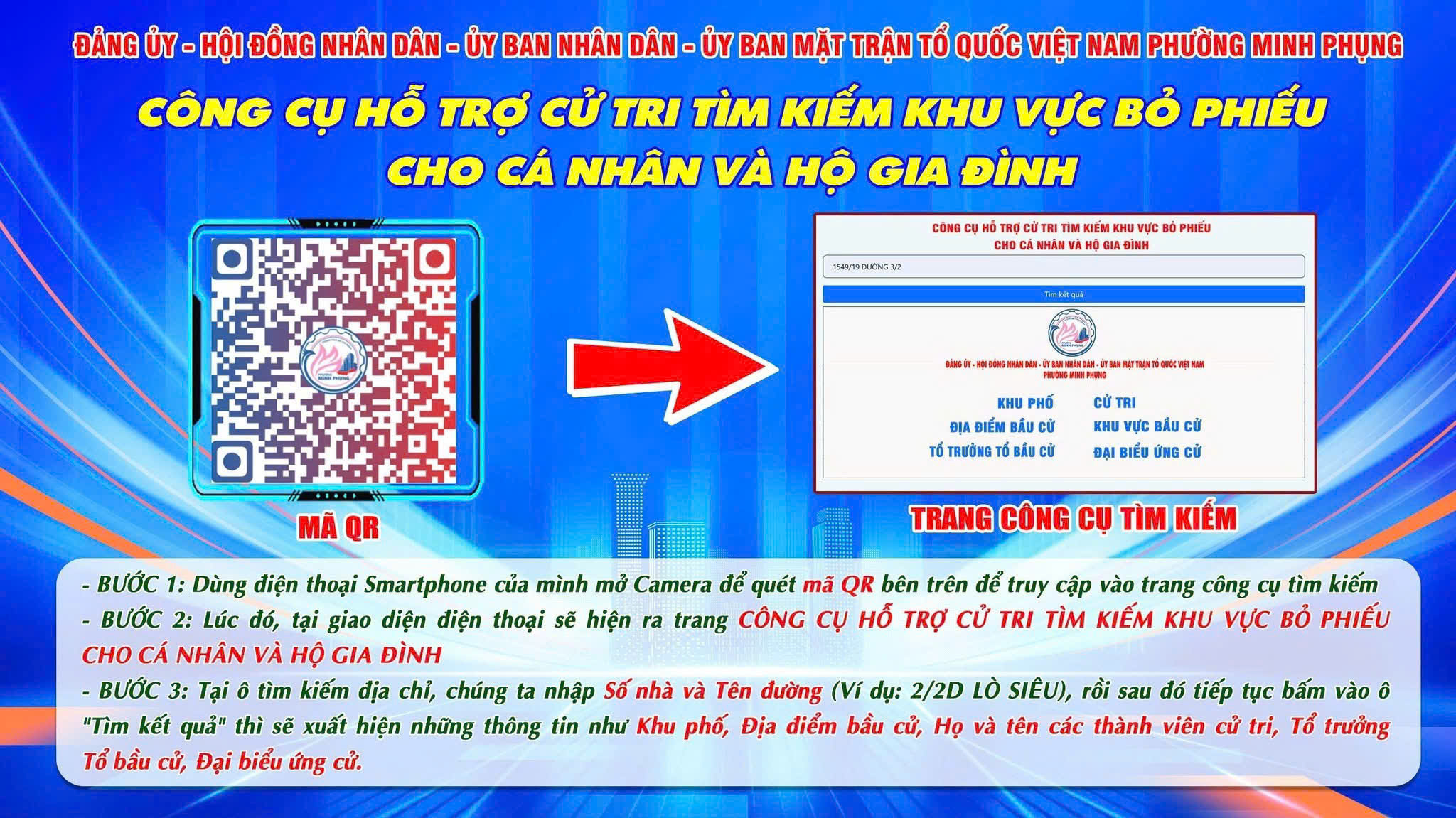 Tại phường Minh Phụng, chính quyền địa phương đã đưa vào sử dụng hệ thống "Công cụ hỗ trợ cử tri tìm kiếm khu vực bỏ phiếu cho cá nhân và hộ gia đình". Công cụ này cho phép người dân tra cứu danh sách cử tri theo từng hộ, đồng thời xác định khu vực bỏ phiếu của từng thành viên.