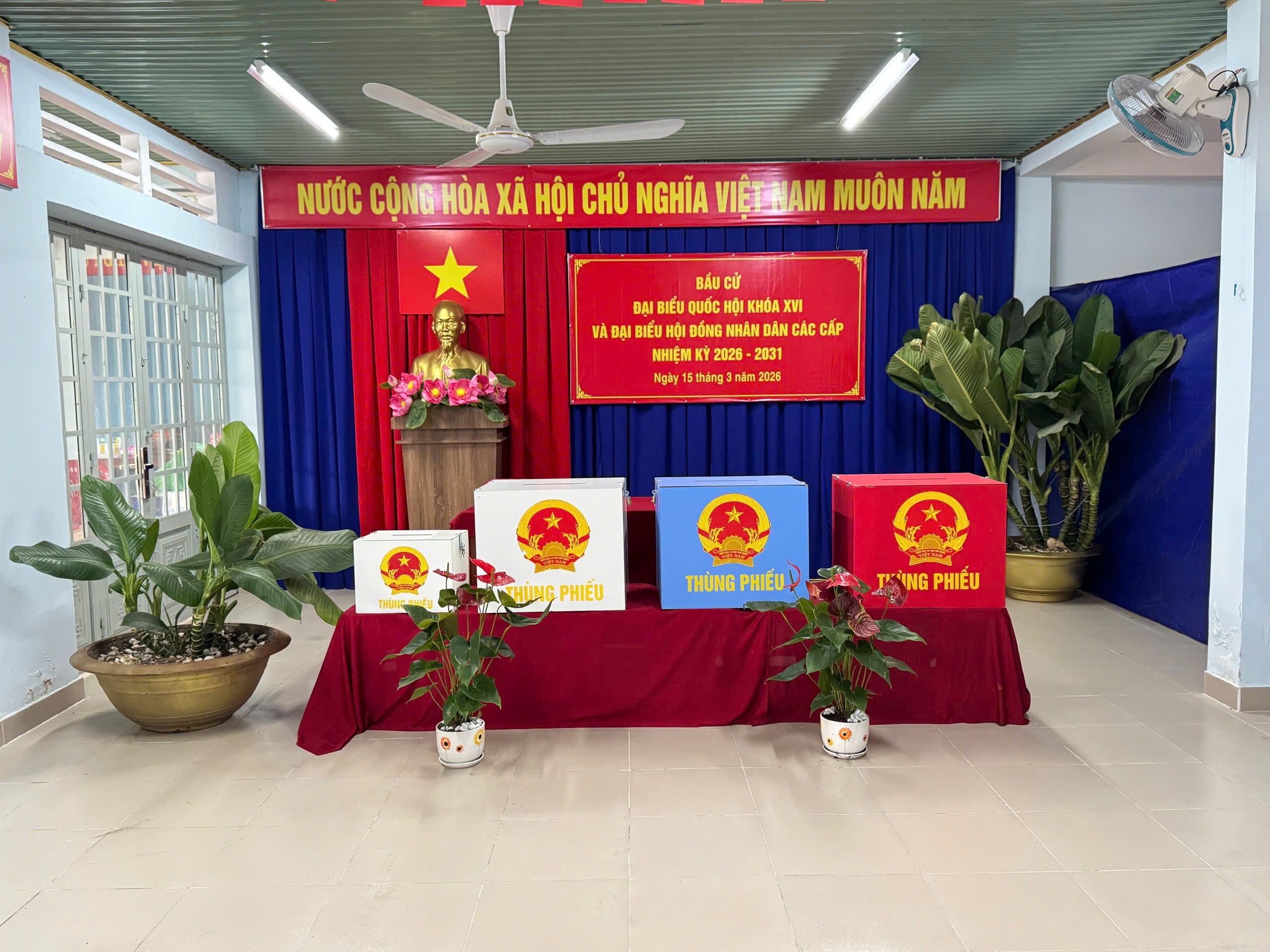Công tác phòng cháy chữa cháy (PCCC) cũng không được lơ là. Lực lượng chức năng đã thực hiện tổng kiểm tra hệ thống điện tại các điểm bầu cử, trang bị 80 bình chữa cháy mới và niêm yết nội quy PCCC rõ ràng. Sự chuẩn bị kỹ lưỡng về vật chất như: đặt làm đủ số lượng thùng phiếu và trang trí trang trọng bằng pano, khẩu hiệu, ảnh Bác Hồ, cờ Tổ quốc đã mang lại diện mạo chỉn chu, uy nghiêm cho các điểm bỏ phiếu, sẵn sàng đón cử tri.