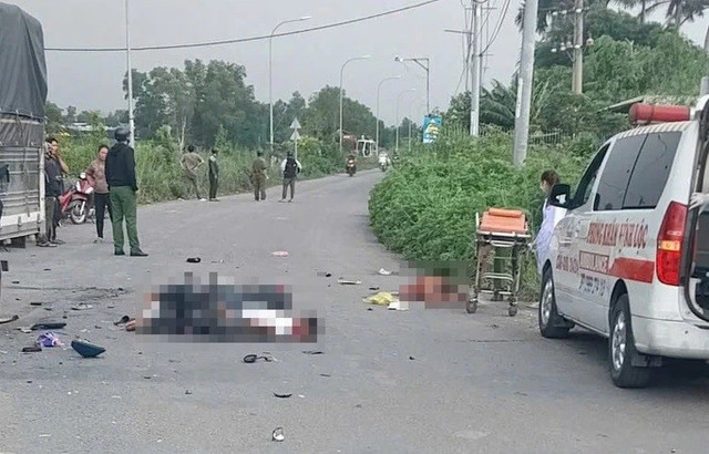 Khoảng 13h cùng ngày, xe tải do một nam tài xế điều khiển lưu thông trên đường Trần Hải Phụng, hướng vào trung tâm xã Tân Vĩnh Lộc (huyện Bình Chánh cũ). Khi đến khúc cua, phương tiện này bất ngờ va chạm trực diện với xe máy chở hai người đàn ông chạy hướng ngược lại.