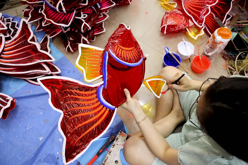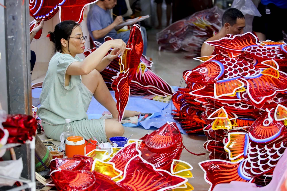 Những ngày này, các hộ gia đình làm lồng đèn truyền thống đang vào gia đoạn cao điểm để chuẩn bị hàng cho Tết Trung thu. Ảnh: NGUYỆT NHI