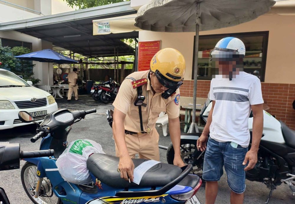 CSGT tạm giữ phương tiện của ông M.V.T. Ảnh: Nguyên Chân