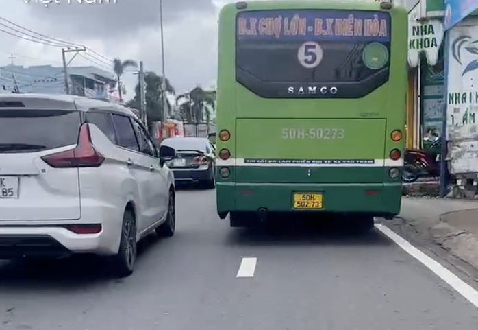 Trước đó, PC08 nhận được video ghi lại hình ảnh xe buýt số 5 (tuyến Bến xe buýt Chợ Lớn - Bến xe Biên Hòa) chạy trên đường Hoàng Cầm (Quốc lộ 1K trước đây), phường Linh Xuân, đã chiếm hết lối đi của người đi xe máy.