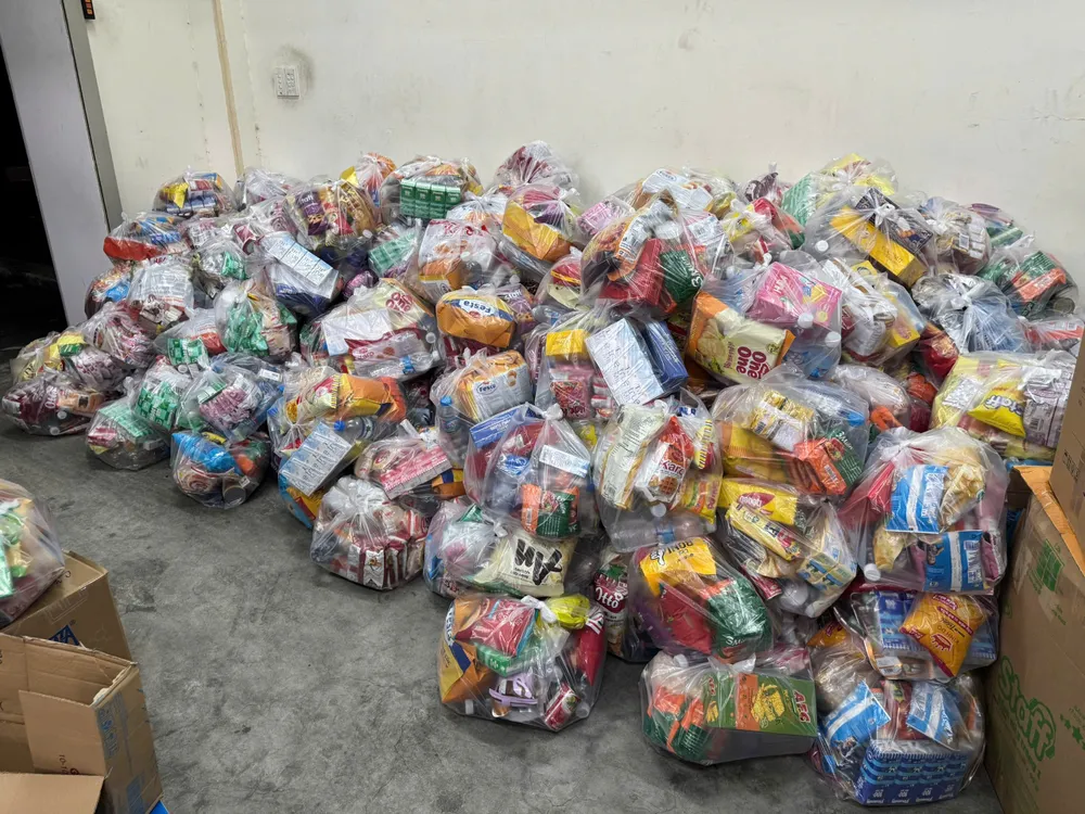 Nhu yếu phẩm được đóng gói chờ vận chuyển. Ảnh: BẢO PHƯƠNG