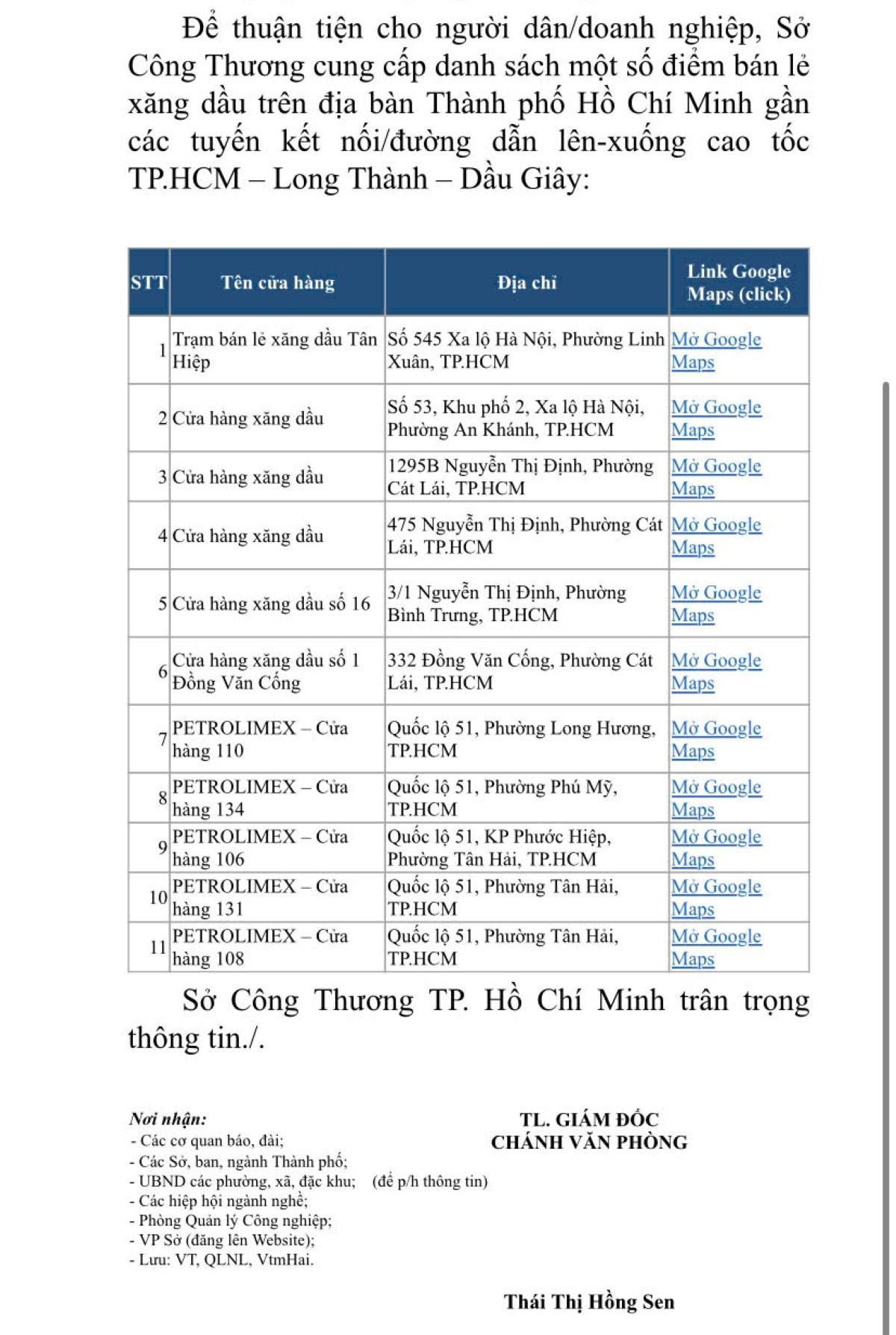 Sở Công Thương công bố danh sách một số điểm bán lẻ xăng dầu trên địa bàn TPHCM gần các tuyến kết nối, đường dẫn lên-xuống cao tốc TPHCM – Long Thành – Dầu Giây