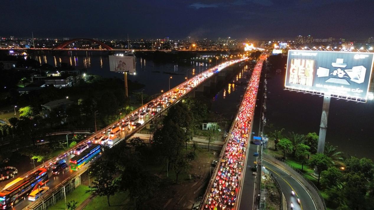 Ùn ứ giao thông nghiêm trọng trên cầu Bình Triệu 1, 2. Ảnh: Mỹ Quỳnh.