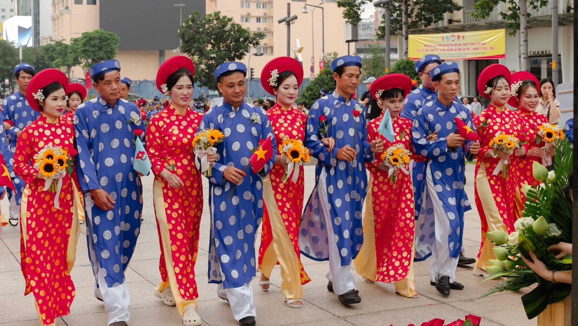 Ngay sau lễ dâng hoa, các cặp đôi tiếp tục diễu hành bằng phương tiện giao thông thân thiện của thành phố: Buýt đường sông, metro và xe do Ban Tổ chức bố trí – trước khi đến Trung tâm Hội nghị - Tiệc cưới Claris Palace để bước vào lễ cưới chính.