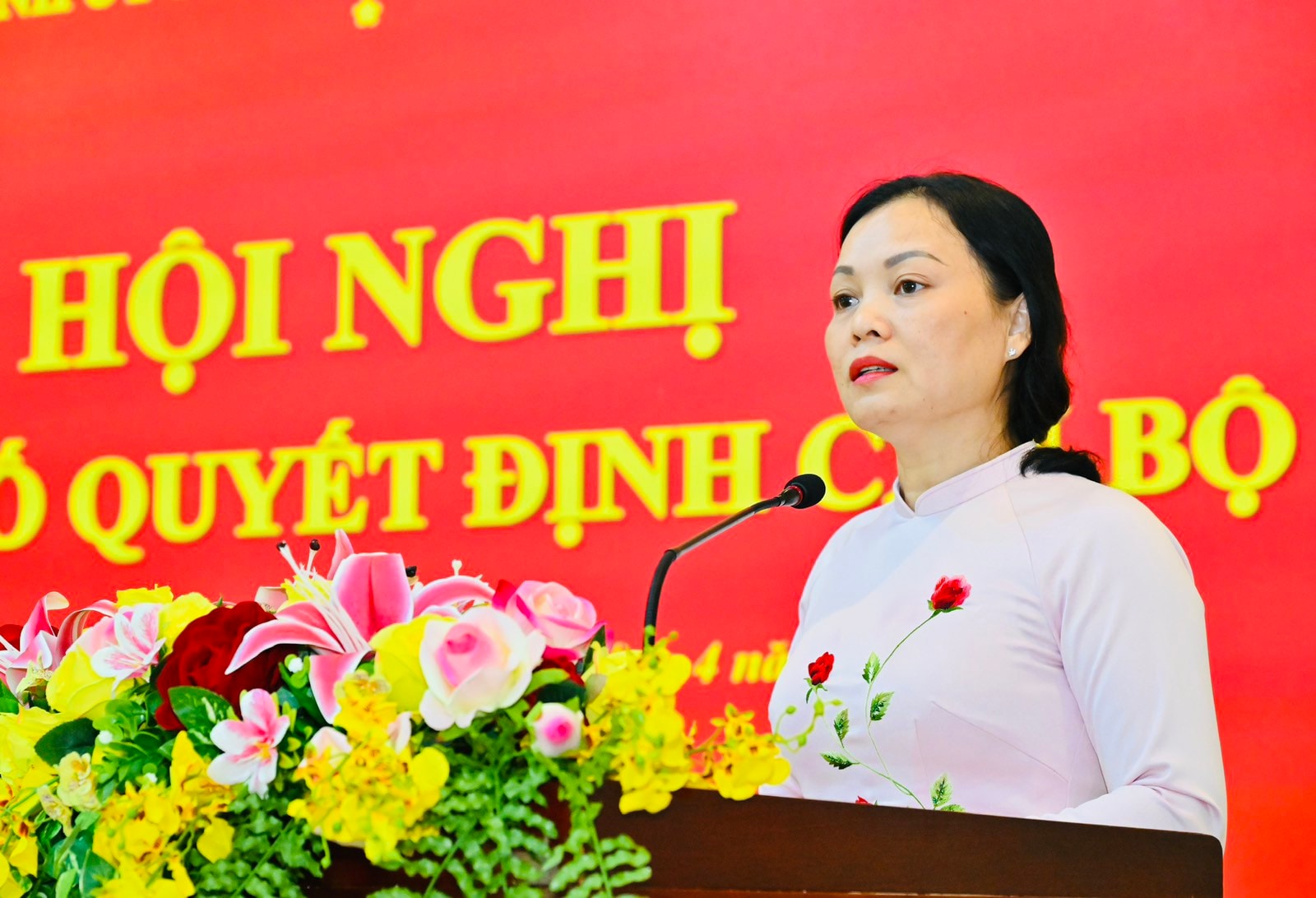 Tân bí thư phường Tân Thành Huỳnh Thị Phúc phát biểu nhận nhiệm vụ mới. Ảnh: Việt Dũng